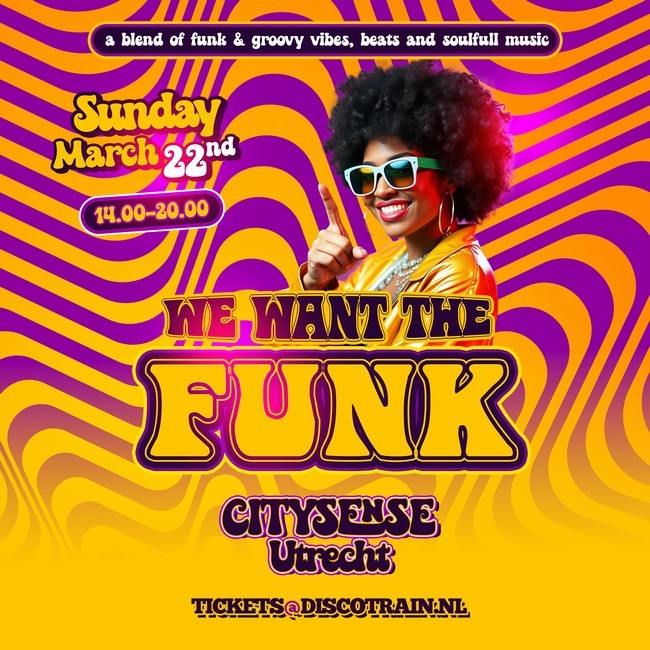 Disco-Train host We Want The Funk bij CitySense Utrecht. Een dayparty met funk, disco en soul die lekker in elkaar grijpen.